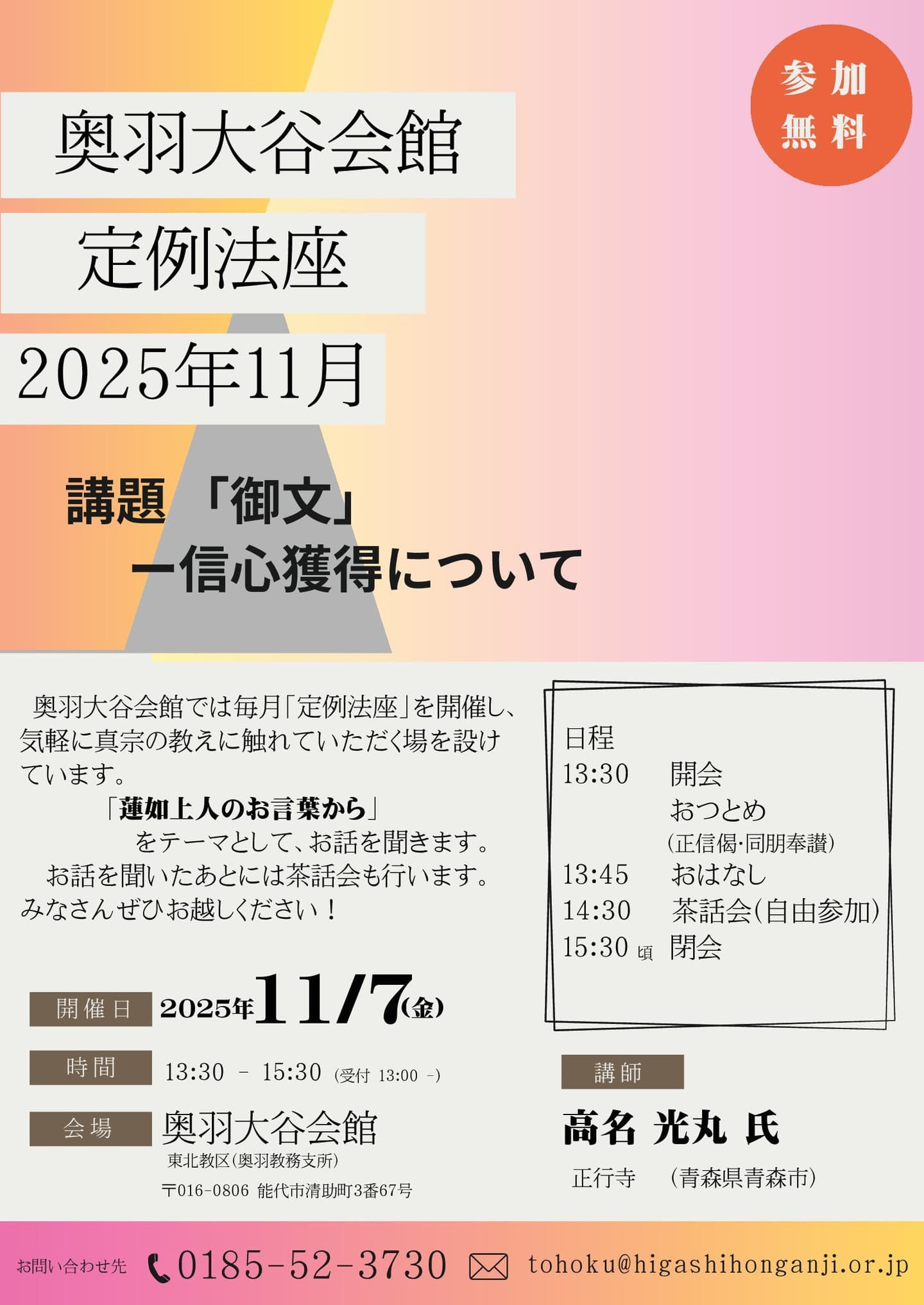 日 時:2025年10月1日(水) 13:30 ~ 大逮夜