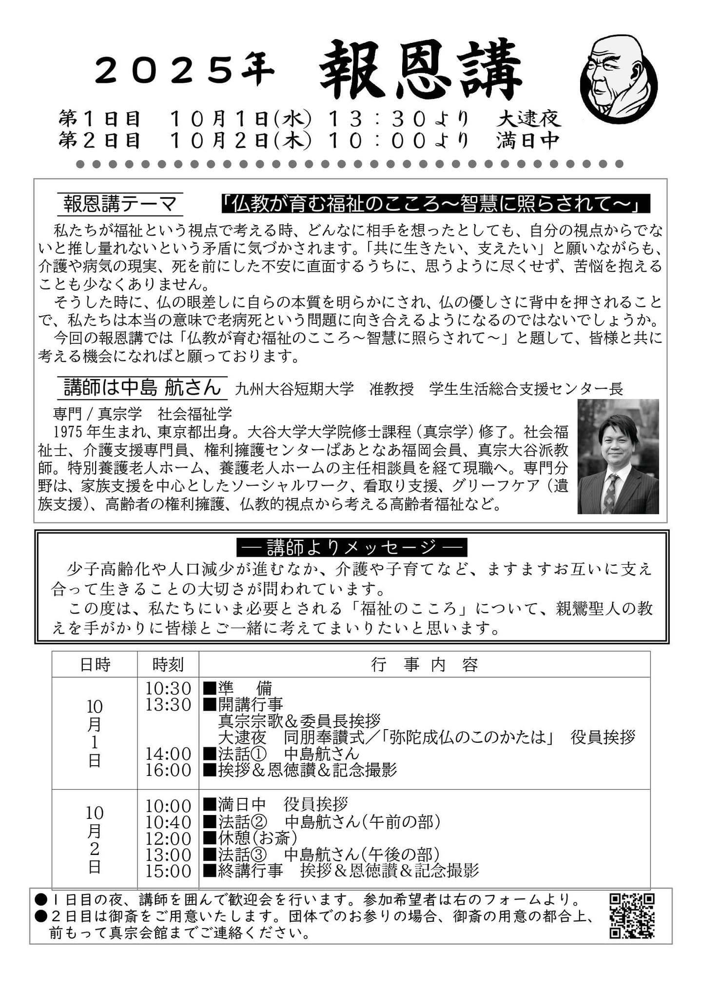 ※ 2日目はお斎をご用意いたします。団体でのお参りの場合、用意の都合上前もって真宗会館までご連絡ください。
