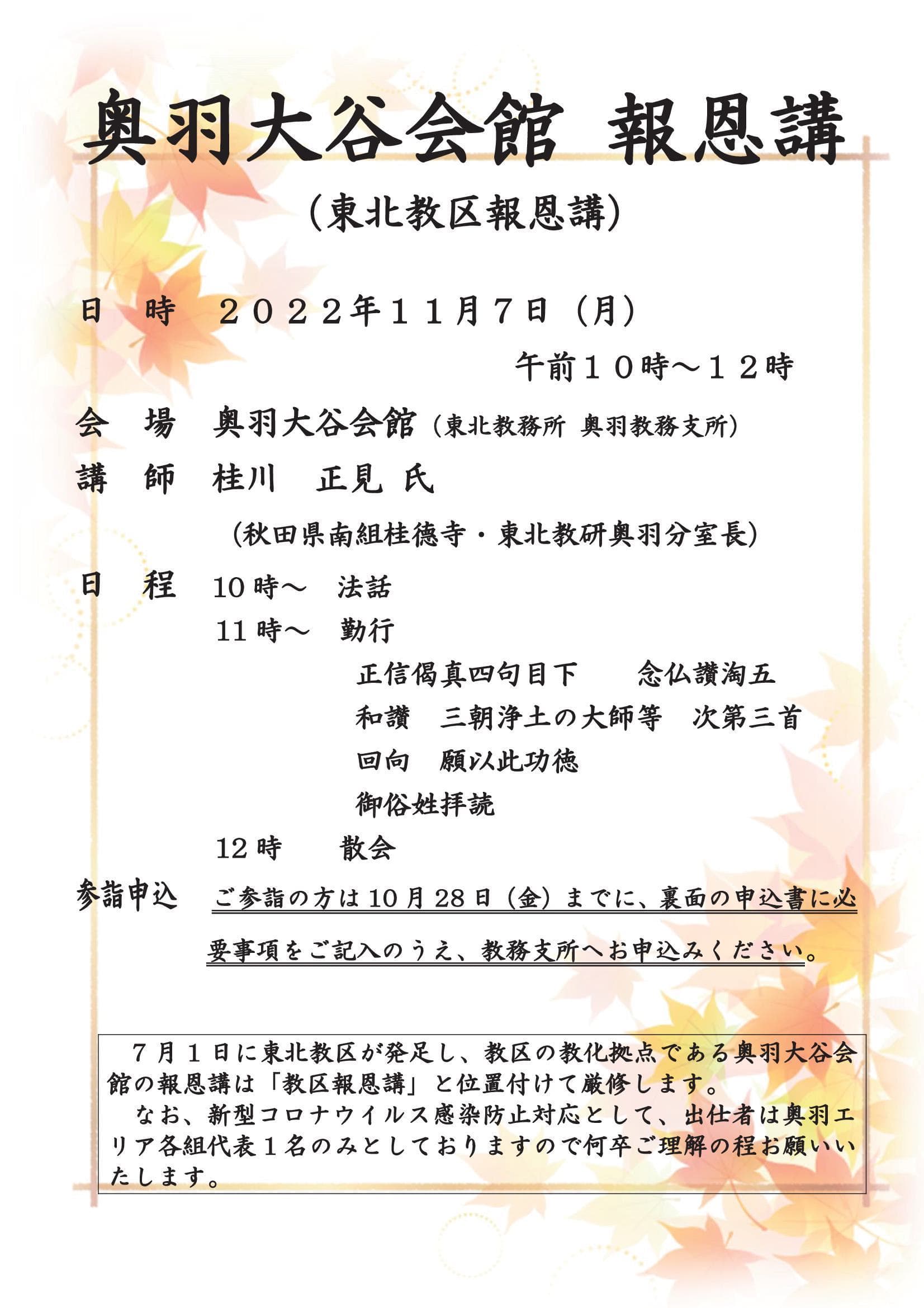 奥羽大谷会館 報恩講のお知らせ