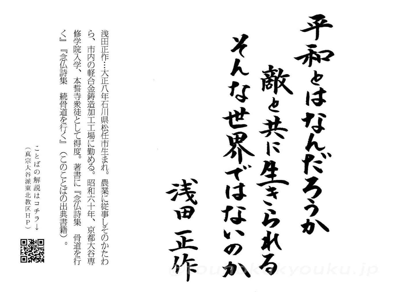 だからたとえ考えが合わない相手(敵)であっても、その人といかに共に生きていく歩みができるだろうかということを模索することが、本当の意味での平和ということになるのだろう。とても困難な課題だが、そこにしか平和はないのだ。