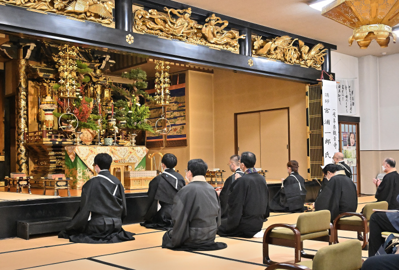 午前10時より執り行われた結願満日中の法要には、堂内に用意された椅子席がほぼすべて埋まるほどの参詣者が集われ、また、内陣外陣あわせて14人の僧侶が出仕をし、勤行が行われました。